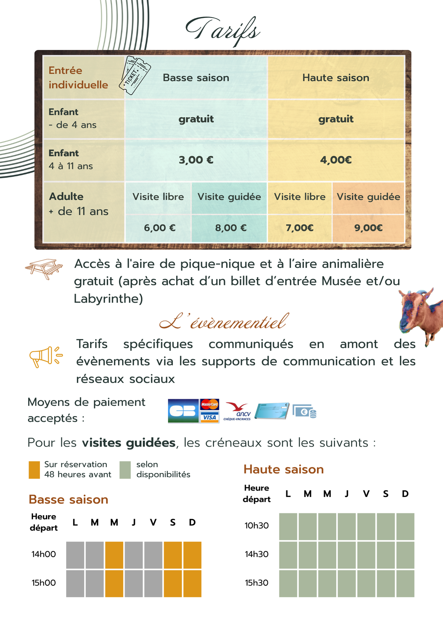 Les réservations groupes, scolaires et ALSH doivent être effectuées au moins deux semaines avant la date choisie.