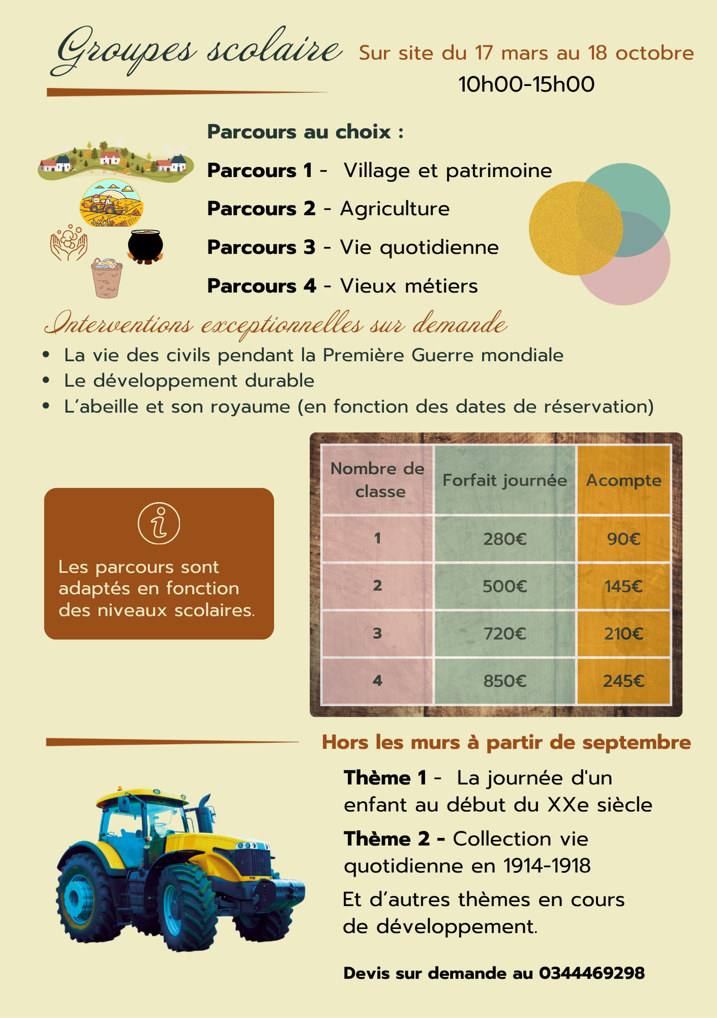 Pour les groupes scolaires (uniquement sur réservation) :