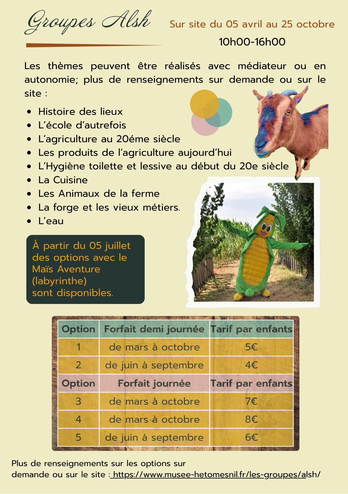 Pour les groupes ALSH (uniquement sur réservation) :