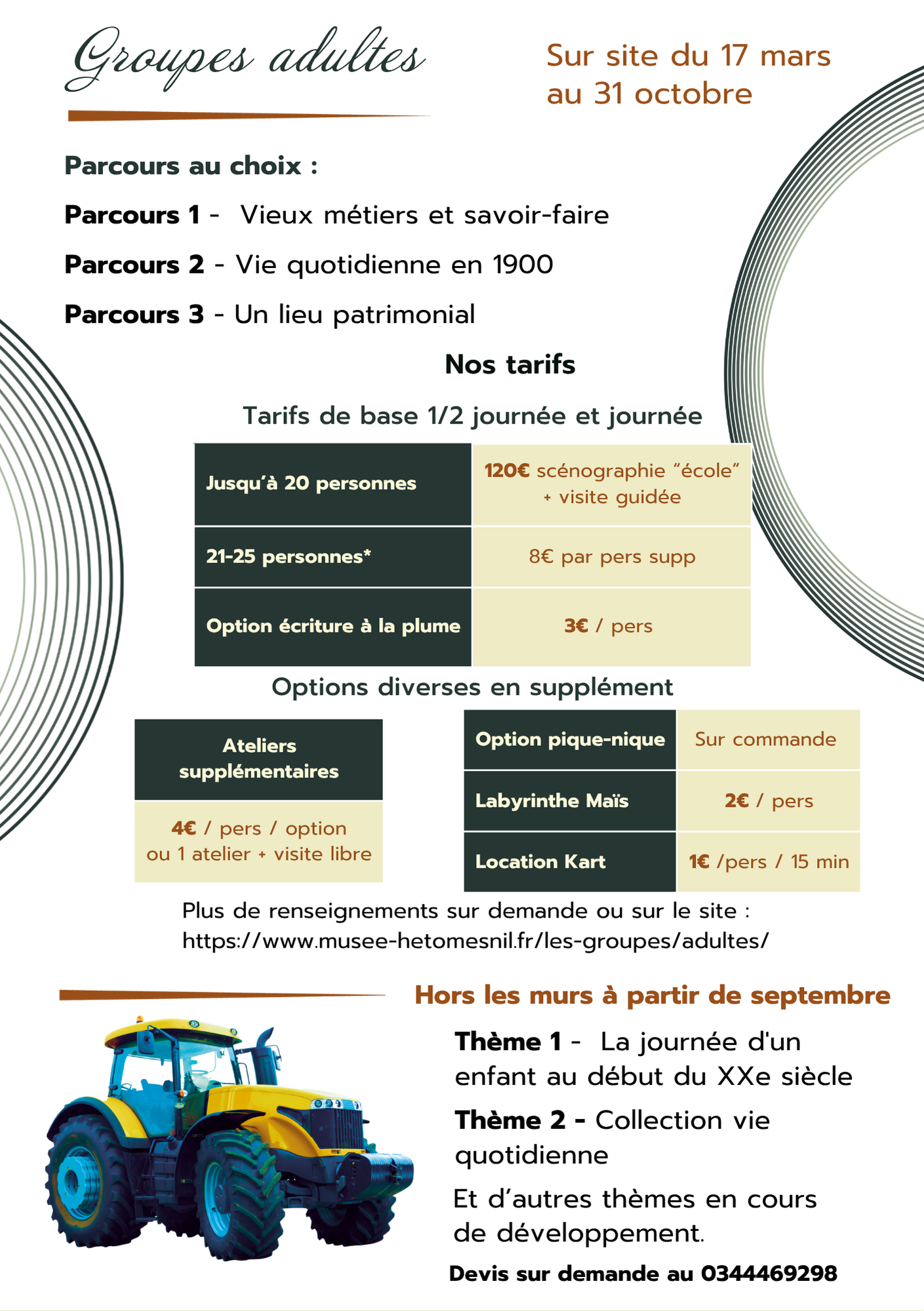 Pour les groupes adultes (uniquement sur réservation) :